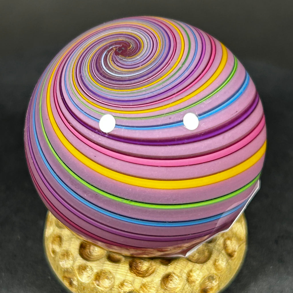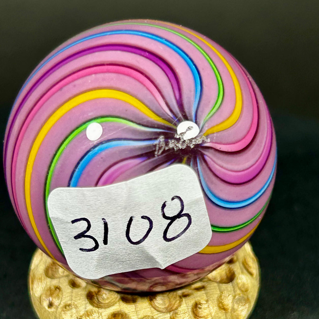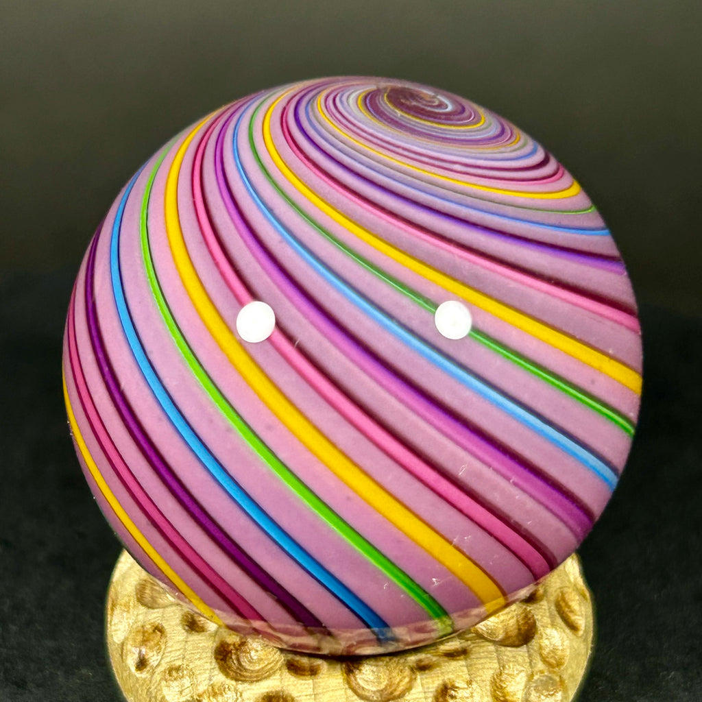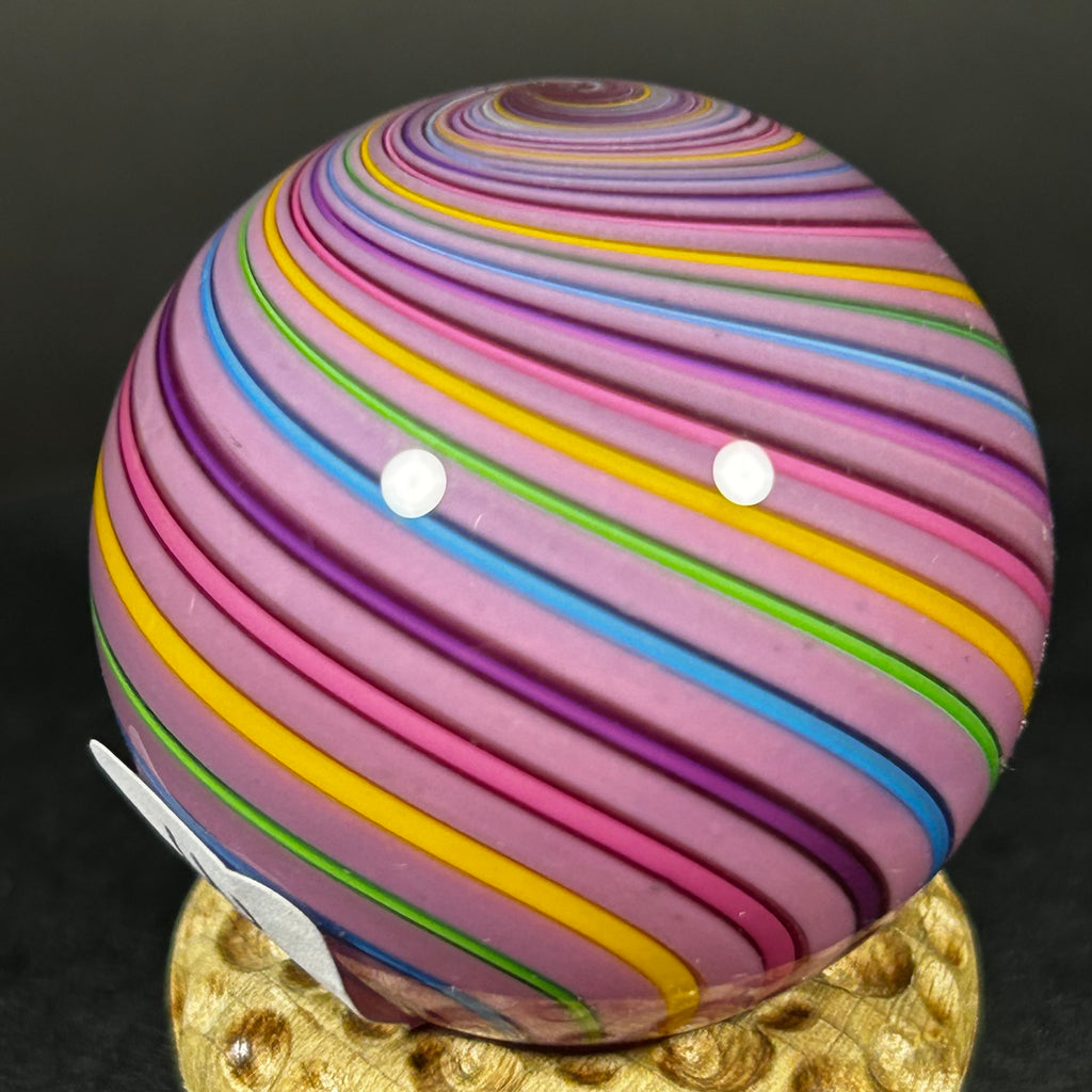 Geoffrey Beetem Art Glass Marble, pink core, clam broth banded.