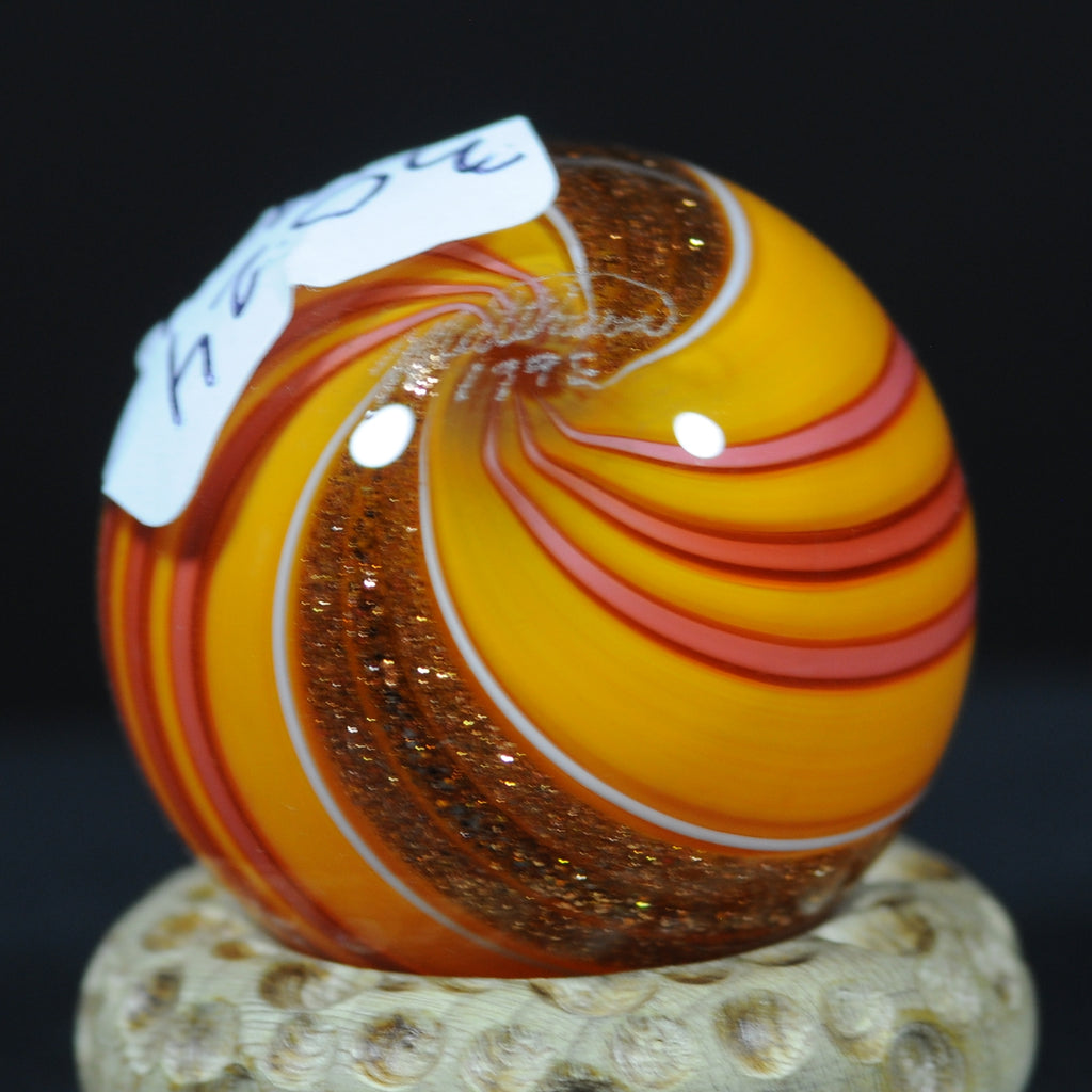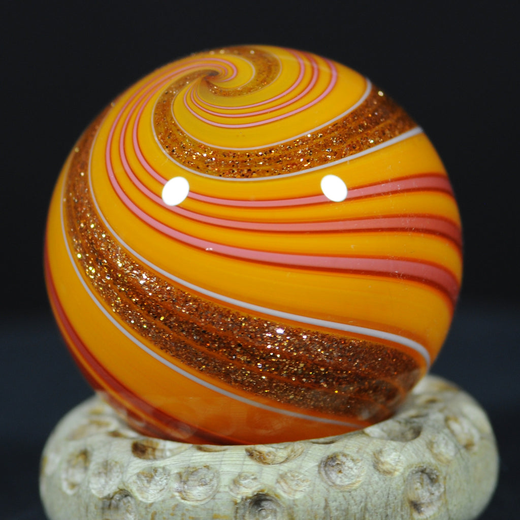 Mark Matthews Triple Lutz - Triple Banded, All the Orange, Art glass marble 1.15"