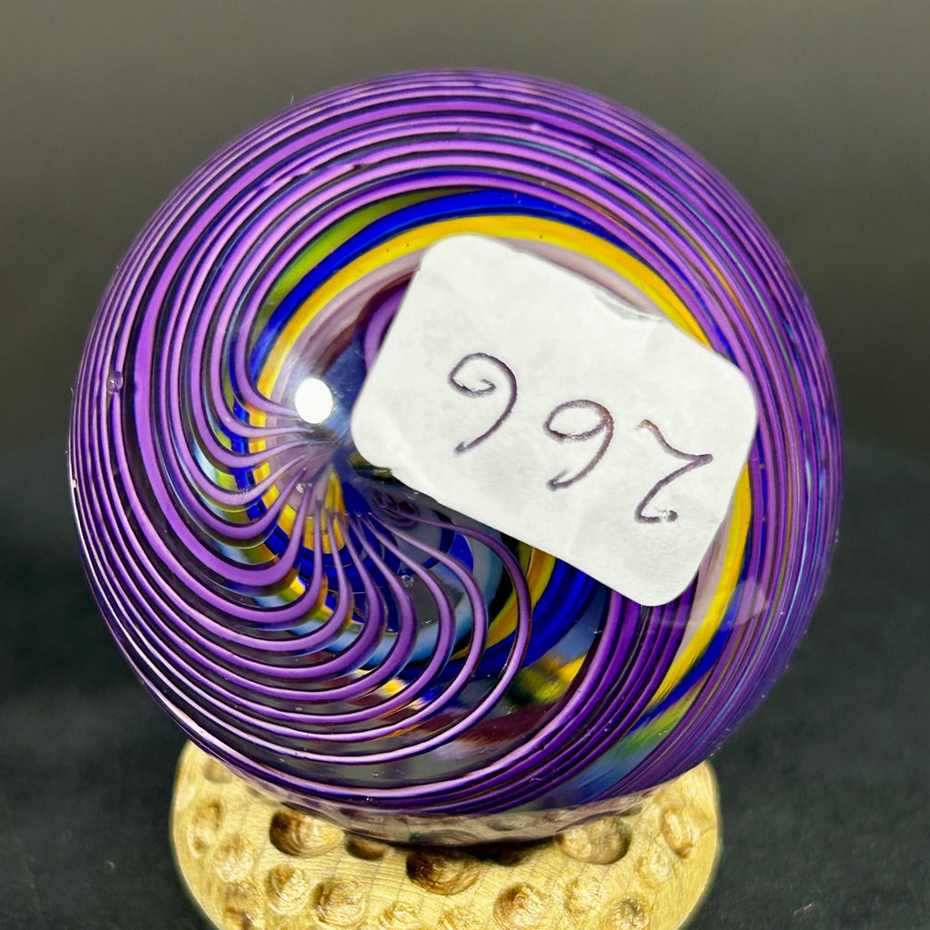 Jody Fine Art Glass Marble, fine lines on lines and a hidden core, 1.64”