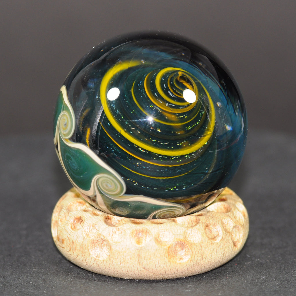 Douglas Ferguson Art Glass Marble, Reverse Vortex dream in Green